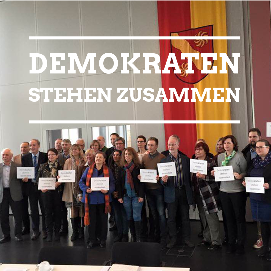 Zu Beginn der letzten Kreistagssitzung wollten wir ein Zeichen setzen. Demokraten stehen zusammen, auch im Kreis Warendorf! SPD, Piraten, FWG, Linke und Grüne waren dabei.