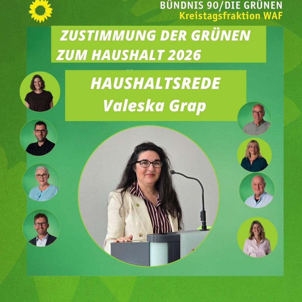 Bündnis 90/Die GRÜNEN stimmen dem Haushaltsentwurf 2026 mit einem Hebesatz der Kreisumlage von 36,3 % und einer Jugendamtsumlage von 21,0 % zu.