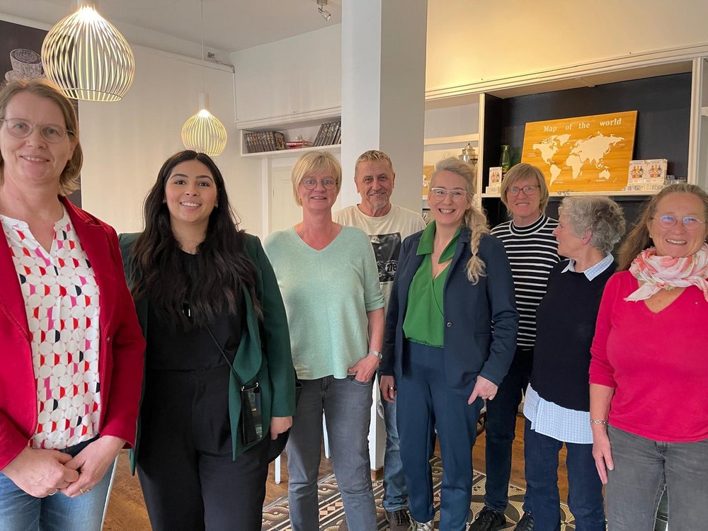 Im Anschluss an den regen Austausch beim Ortstermin hatte der Grüne Ortsverband zum Coffee-Talk in das Café Coffee Time eingeladen. Ortsverbandsvorsitzende Ingeborg Seliger freute sich über den großen Kreis der interessierten Gesprächspartner*innen und begrüßte Janina Singh, die auf Platz 19 der Europaliste kandidiert, auch im Namen von Ortsverband und Ratsfraktion. Diskutiert wurden Themen wie TikTok, Fake News und die Strukturen der verschiedenen Parteien. Gemäß derzeitigen Umfragen wird Singhs Einzug ins Europaparlament denkbar knapp. „Da kann ich jede Stimme gebrauchen, um in Brüssel Westfalen vertreten zu dürfen“, so die EU-Kandidatin abschließend.